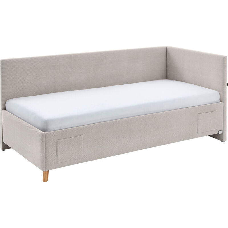 Kinderbett mit Bettkasten und Rückenteil – Kinderbett Kobi – Stoff – B 140 T 200 H 42 cm – Stellmass: 150x210x90, Fusshöhe: 10, Einlegetiefe: 15 – inkl. Einlegerahmen, ohne Matratze