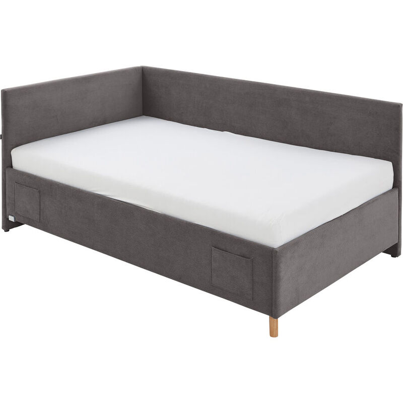 Kinderbett mit Bettkasten und Rückenteil – Kinderbett Kobi – Stoff – B 90 T 200 H 42 cm – Stellmass: 100x210x90, Fusshöhe: 10, Einlegetiefe: 15 – inkl. Einlegerahmen, ohne Matratze