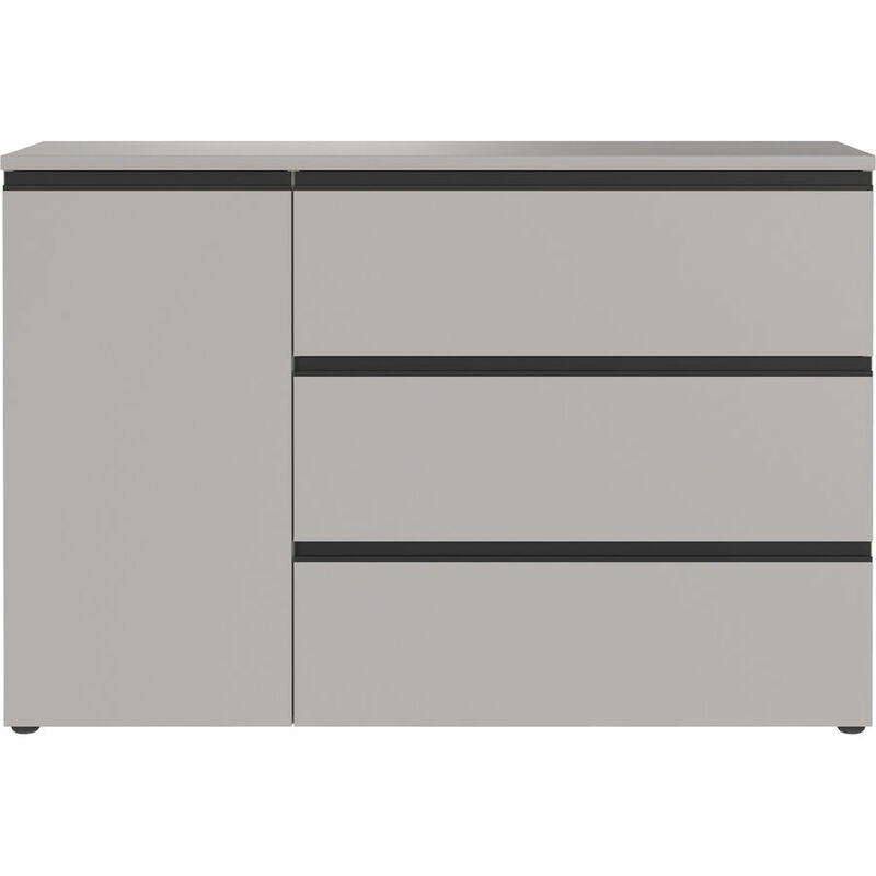Kommode – Kommode Eliano – Holzwerkstoff – B 135 T 41 H 91 cm – Drei Schubladen (jeweils belastbar bis zu 10 kg) und eine Tür, dahinter zwei verstellbare Einlegeböden (jeweils belastbar bis zu
