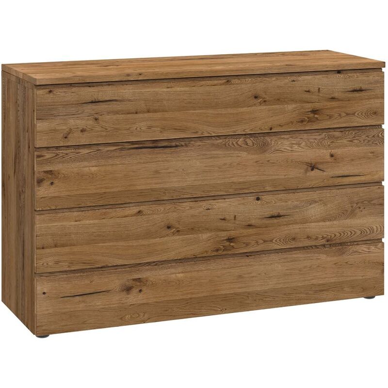 Kommode – Kommode Holz Werk – Sumpfeiche – B 120 T 42 H 80 cm – Sumpfeiche massiv natur geölt, inkl. 4 Schubladen push to open