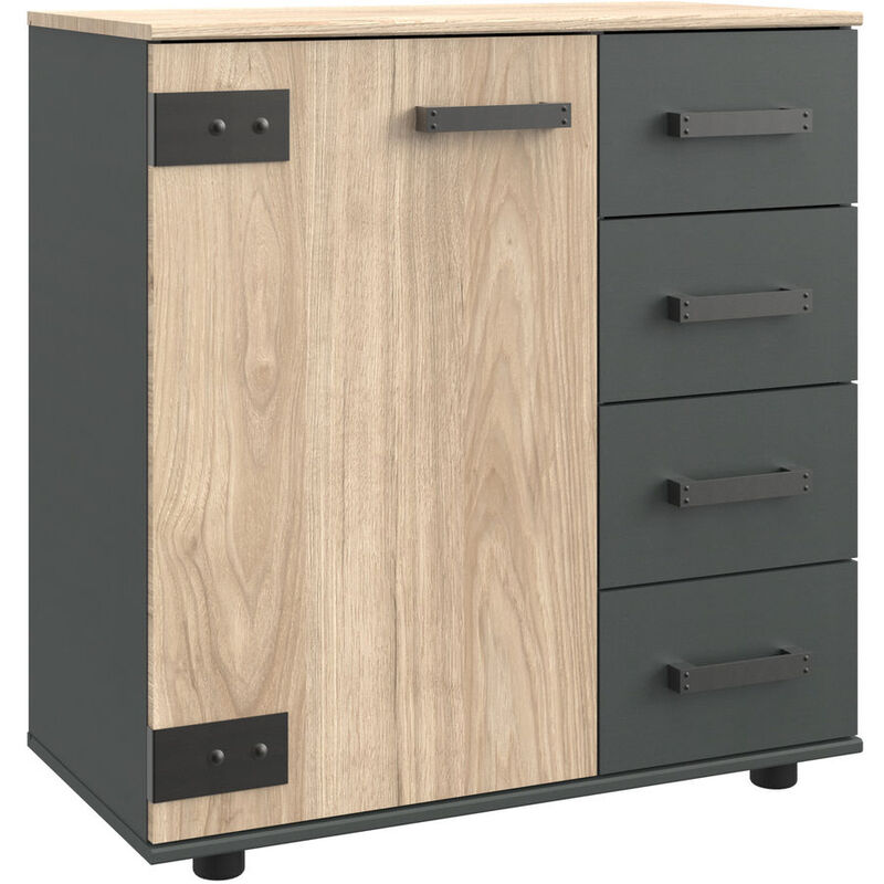 Kombikommode 1 Tür, 4 Schubladen – Kommode Malma – Holzwerkstoff – B 81 T 41 H 83 cm – 1 Tablar