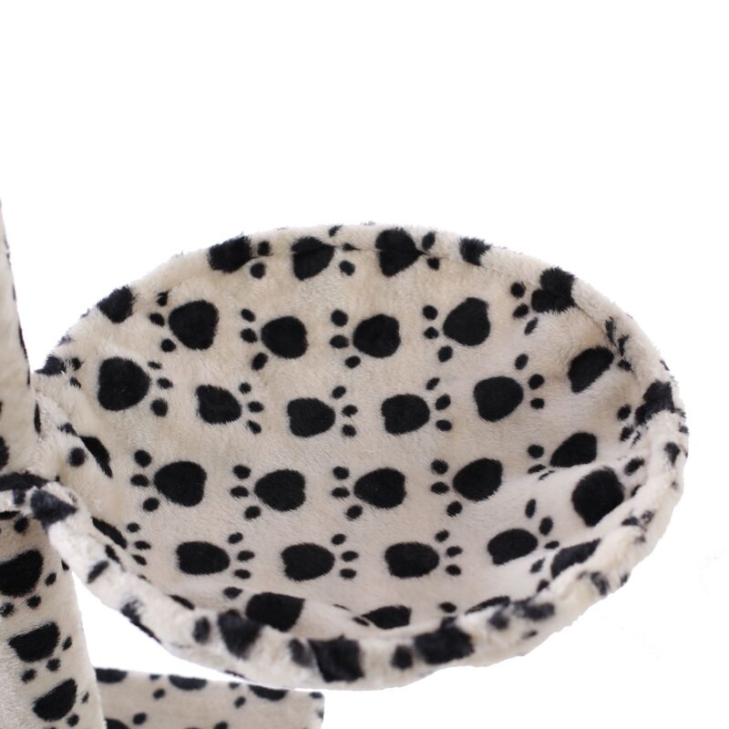 - Zwei plüschige und flauschige Körbchen in Beige mit Pfoten für den Katzenbaum