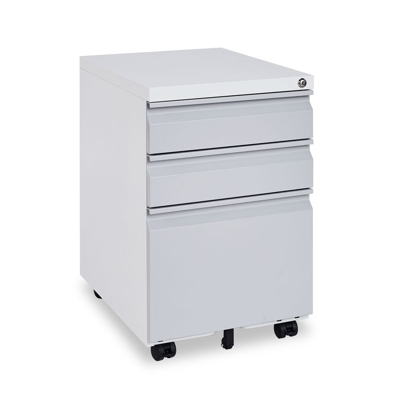 Der hochwertige Metallschrank bietet mit seinen drei praktischen Schubladen viel Stauraum für das Aufbewahren all deiner Büroutensilien. Dank der abschliessbaren Schubladen lassen sich wichtige Unterlagen sicher verstauen. Die innovative Rollkonstruktion mit zusätzlichem Vorderrad bietet hohe Stabilität. Ergänze deine Büroeinrichtung mit diesem funktionalen Aufbewahrungsschrank!