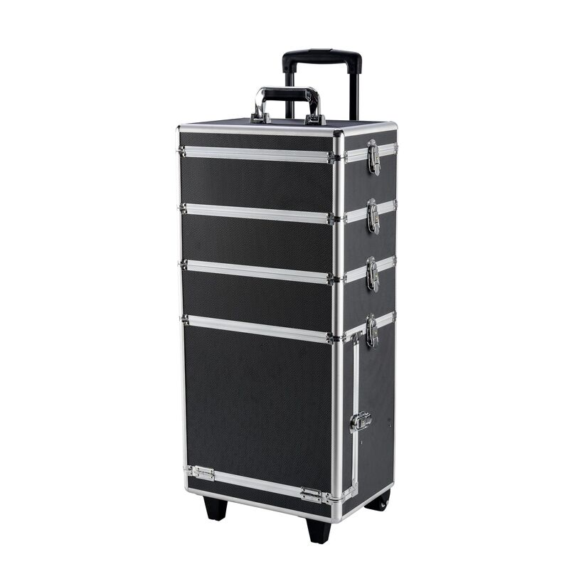 Mit diesem Trolley kannst du deine Kosmetik- und Schminkutensilien ordentlich lagern und einfach transportieren. Durch den modularen Aufbau aus vier stapelbaren Teilen, kannst du den Schminkkoffer jederzeit bedürfnisgerecht zusammenstellen. Die Innenauskleidung mit schwarzem Samt sorgt für einen edlen Look. Der Rollkoffer ist ideal zum Verstauen von Nähutensilien, Bastelmaterial und Werkzeug. Mache diesen vielseitigen Koffer zu deinem treuen Begleiter, damit du immer alles bei dir hast, was du für Hobby oder Beruf benötigst!