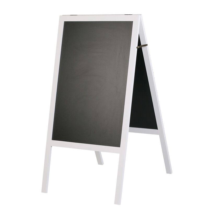 Eine liebevolle Nachricht versüsst den Tag und ein clever angepriesenes Produkt sorgt für mehr Umsätze. Informiere deine Kunden über Menüs, Produkte oder Öffnungszeiten mit diesem Kundenstopper in Weiss! Die beidseitig beschreibbare Werbetafel ermöglicht ein wirkungsvolles Marketing mit geringem Aufwand. Die Kreide kannst du einfach mit einem nassen Lappen abwischen und die Tafel neu beschreiben. Locke mehr Passanten in dein Geschäft mit diesem Passantenstopper!