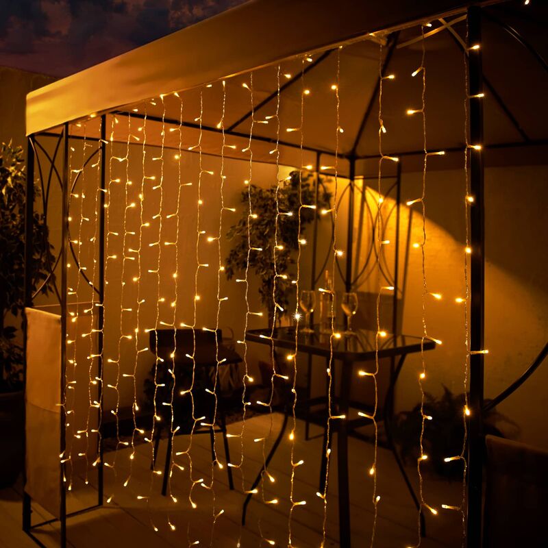 150 cm Breite 150 cm Stränge 12 mit je 16LED Abstand 20 cm Timer Schalter 3 Positionen ON/OFF/TIMER Batterie inklusive 3x NI-MH-Akku 1.2 V 1000mAh