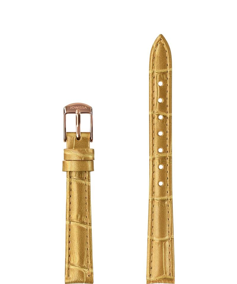 BandmaterialEchtes Leder-Uhrband mit Alligatorprägung und Perlglanz Bandanstossbreite12 mm SchliesseAus Edelstahl mit lasergraviertem Logo SchliessenfarbeRotgold Auswechselbares BandJa, mit quick release ColorBraun / Rosa ReferenceE3.1462.S