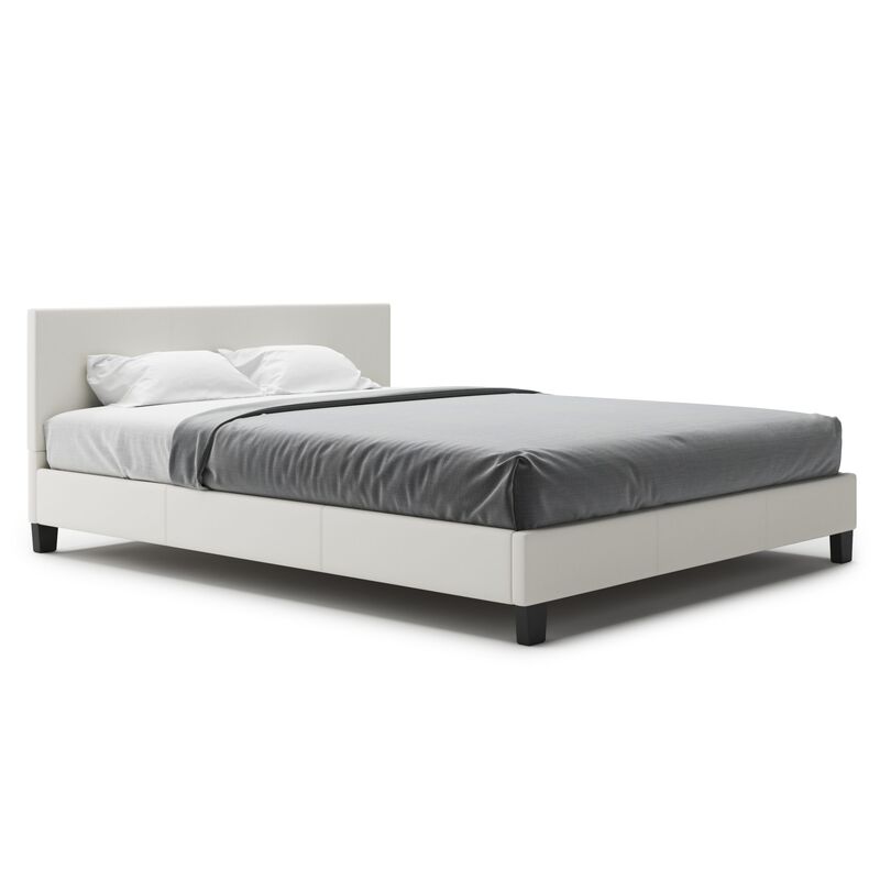Schlichtheit und Modernität verspricht das Lederbett DOZE. Das Doppelbett mit den geraden Linien und dem pflegeleichten weissen Kunstleder fügt sich wunderbar in dein Schlafzimmer ein. Eine gepolsterte Rückenlehne sowie dekorative Ziernähte runden die Erscheinung ab. Freue dich auf ein schnörkelloses Bett mit einem guten Preis-Leistungs-Verhältnis.