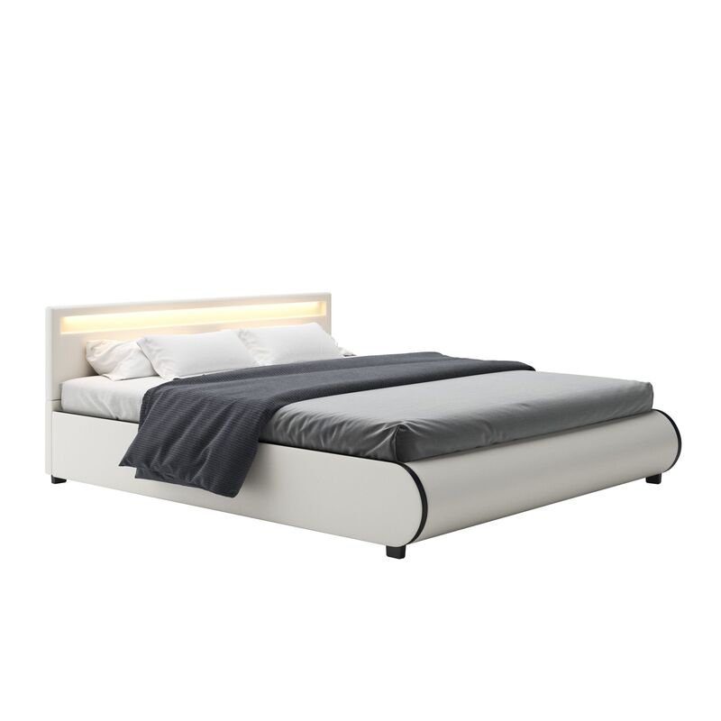 Lederbett LED SIESTA 180 x 200 cm weiss