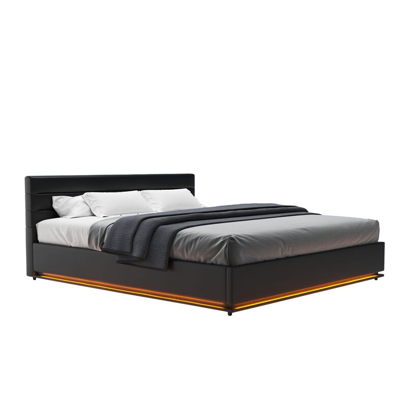 - Lederbett mit LED Licht und hochklappbarem Lattengestell