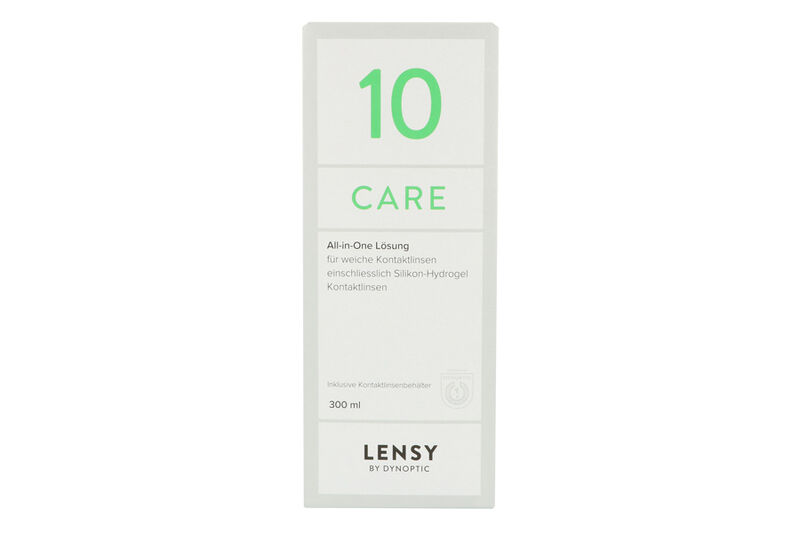 Lensy Care 10 ist eine All-in-one Kombilösung, die für alle weichen Kontaktlinsen, einschliesslich Silikon-Hydrogel-Kontaktlinsen geeignet ist.
