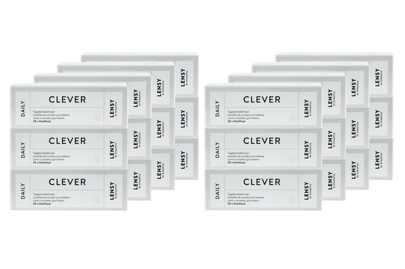 Lensy Daily Clever Multifocal, 8 x 90 Stück Kontaktlinsen von Dynoptic. Hoch sauerstoffdurchlässige Premium-1-Tageslinse aus Silikon-Hydrogel-Material für sehr hohen Tragekomfort und lange angenehme Tragezeiten.