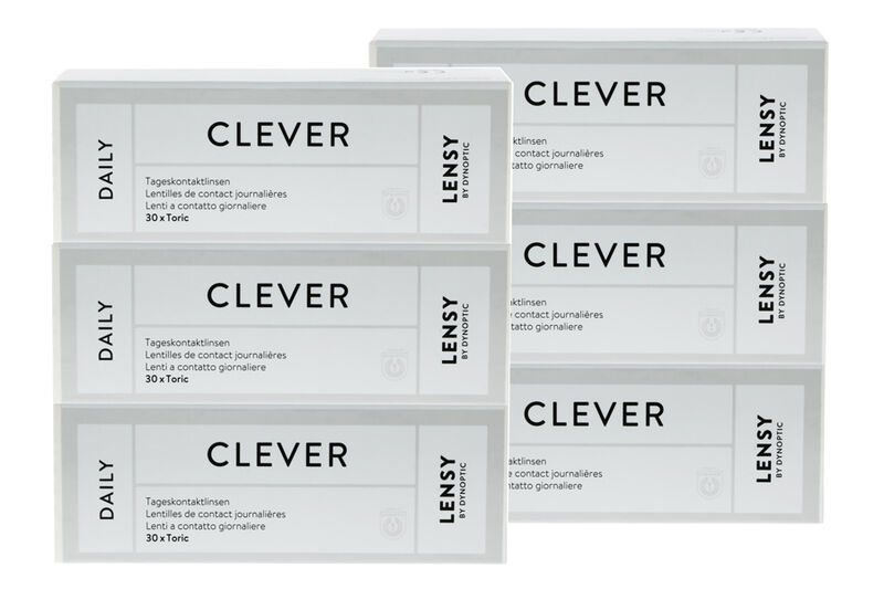 Lensy Daily Clever Toric, 2 x 90 Stück Kontaktlinsen von Dynoptic. Hoch sauerstoffdurchlässige Premium-1-Tageslinse aus Silikon-Hydrogel-Material für sehr hohen Tragekomfort und lange angenehme Tragezeiten.