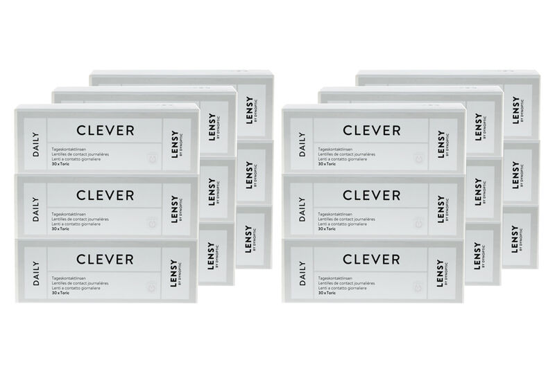 Lensy Daily Clever Toric, 6 x 90 Stück Kontaktlinsen von Dynoptic. Hoch sauerstoffdurchlässige Premium-1-Tageslinse aus Silikon-Hydrogel-Material für sehr hohen Tragekomfort und lange angenehme Tragezeiten.