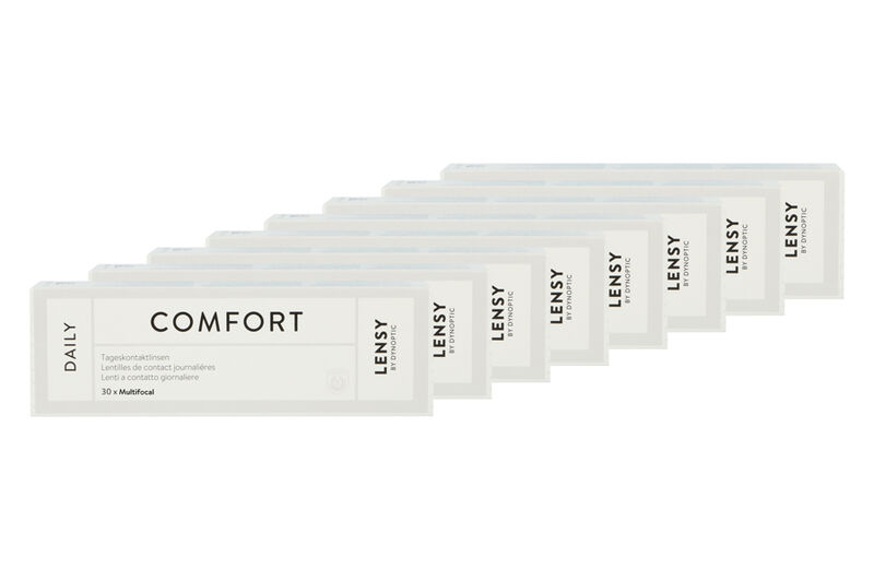 Lensy Daily Comfort Multifocal,8 x 30 Stück Kontaktlinsen von Lensy by Dynoptic. Tageslinsen aus Nelfilcon A mit Precision Profile Design für klare Sicht in alle Distanzen.