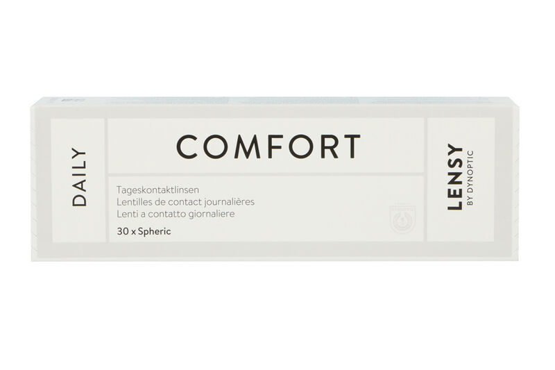 Lensy Daily Comfort Spheric, 30 Stück Kontaktlinsen von Dynoptic, bieten dank einem speziellen Komfort-Film höchsten Spontankomfort nach dem Auflegen auf das Auge.