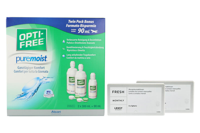 Lensy Monthly Fresh Spheric 2 x 6 Monatslinsen + Opti Free Pure Moist Halbjahres-Sparpaket