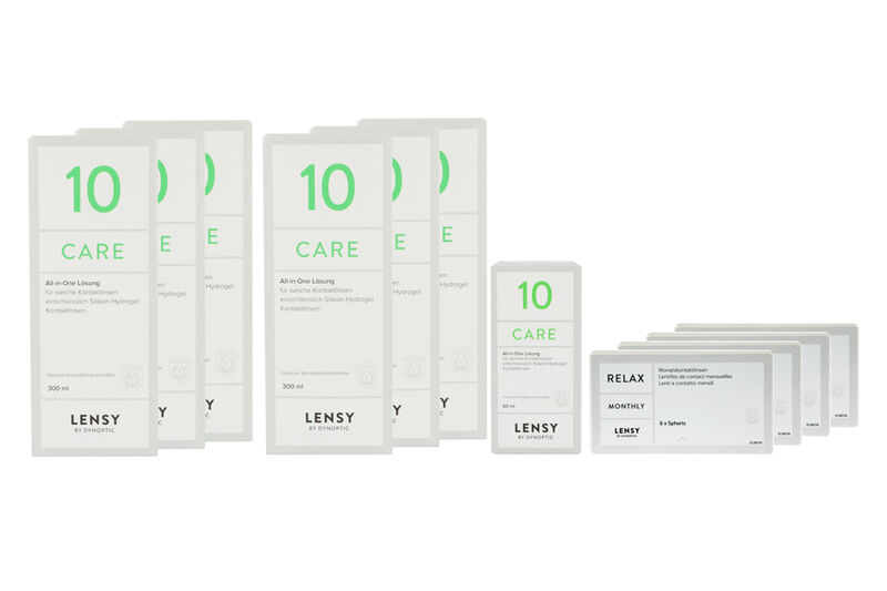 Lensy Monthly Relax Spheric 4 x 6 Monatslinsen + Lensy Care 10 Jahres-Sparpaket