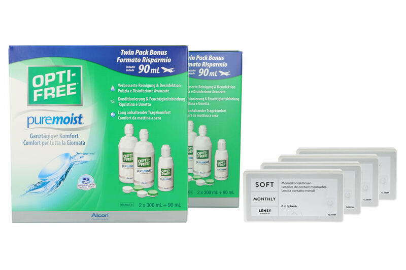 Lensy Monthly Soft Spheric 4 x 6 Monatslinsen + Opti Free Pure Moist Jahres-Sparpaket