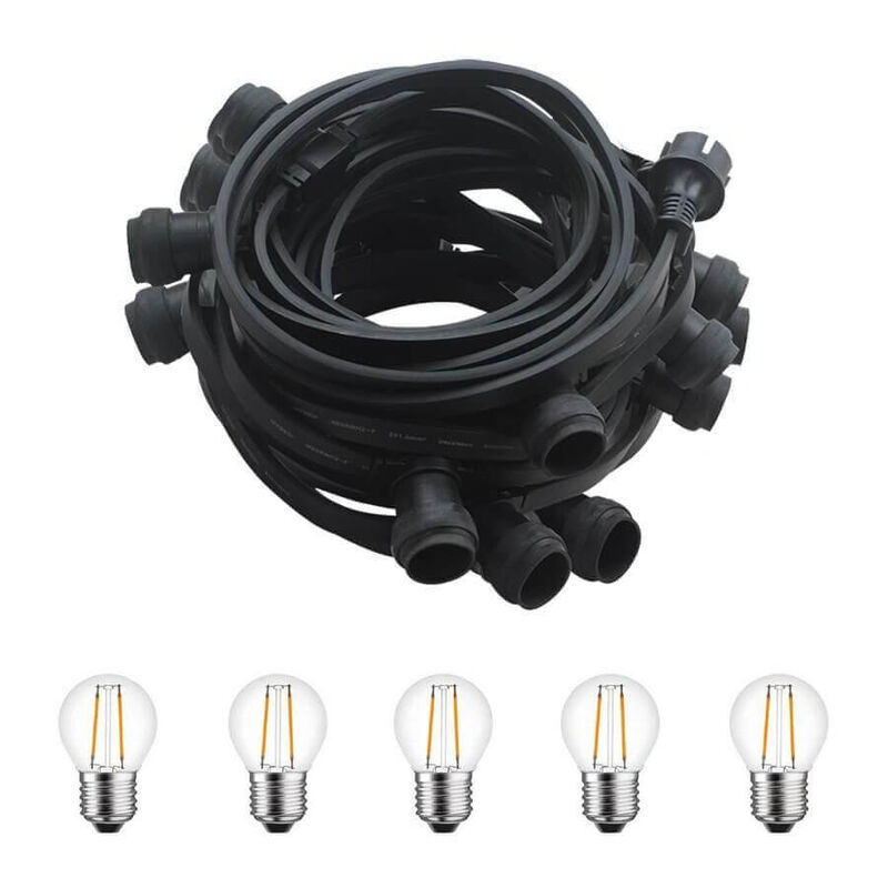 Lichterkette 10m schwarz verlängerbar mit 10 klaren Leuchtmittel G45