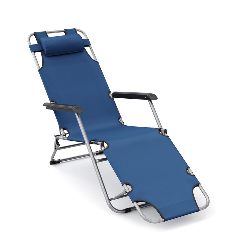 Der bequeme und robuste Liegestuhl in klarem Blau lässt sich mit wenigen Handgriffen schnell und einfach zusammenklappen. Sie haben die Wahl zwischen einer Sitz- oder Liegeposition. Das verstellbare Nackenkissen bietet einen zusätzlichen Komfort. Holen Sie sich diesen multifunktionalen Stuhl für Camping, Strand oder Ihr Zuhause!
