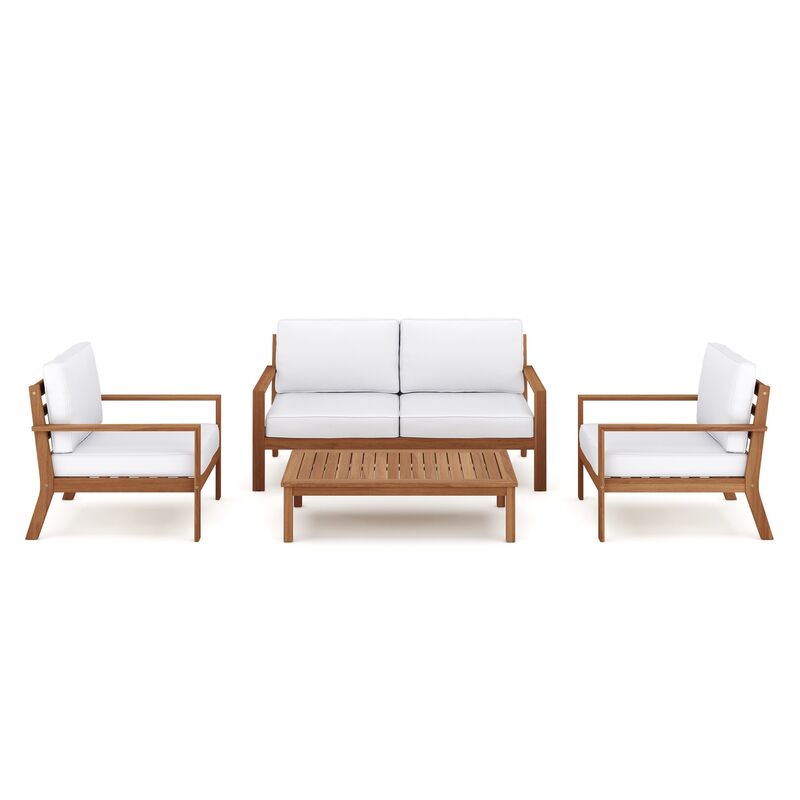 Auf dieser charmanten Gartenlounge aus Naturholz wirst du den besten Sommer deines Lebens verbringen. Das rötliche Akazienholz sorgt für einen besonderen Eyecatcher und ergibt mit den hellen Polsterkissen ein harmonisches Gesamtbild. In den tiefen Gartensesseln kannst du dich nach einem langen Tag entspannt zurücklehnen und die Seele baumeln lassen. Auf dem Gartensofa kuschelst du dich am besten mit deinen Liebsten ein und beobachtest den Sonnenuntergang bei einem Glas italienischem Wein. Der dazugehörende Couchtisch ist in origineller Lattenrostoptik gehalten und kann als Ablagefläche für Getränke, Snacks oder Gesellschaftsspiele dienen. Mache deine Terrasse zum Reiseziel mit dieser Lounge BIBIONE!