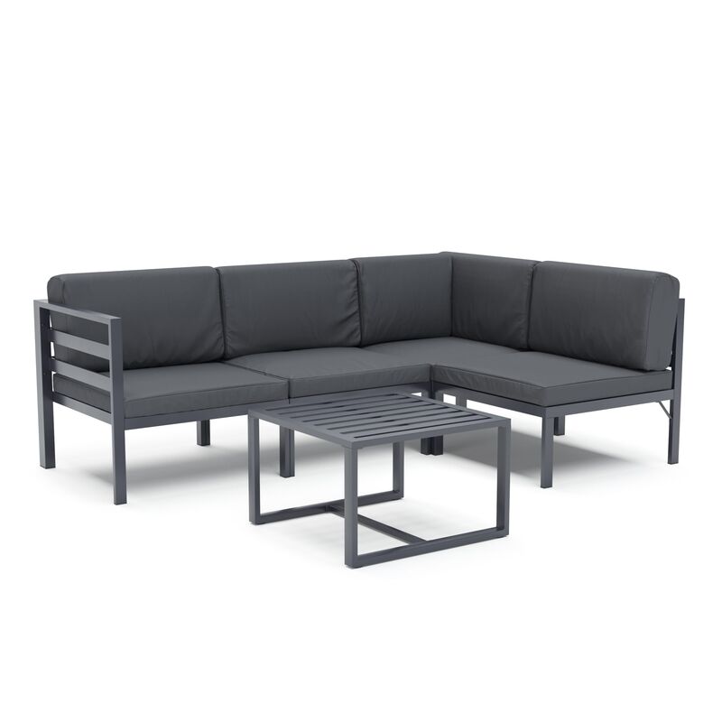 Diese Lounge aus schwarzem Aluminium vereint Funktionalität und zeitloses Design. Durch den modularen Aufbau kannst du wahlweise eine Ecklounge oder ein gerades Sofa zusammenstellen. Die weich gepolsterten Sitz- und Rückenkissen garantieren hohen Sitzkomfort. Auf dem praktischen Beistelltisch kannst du Drinks und Snacks abstellen. Die Möbel sind dank eines pulverbeschichteten Aluminiumrahmens witterungsbeständig und langlebig. Nimm Platz auf dieser bequemen Sitzgruppe und geniesse den Sommer!