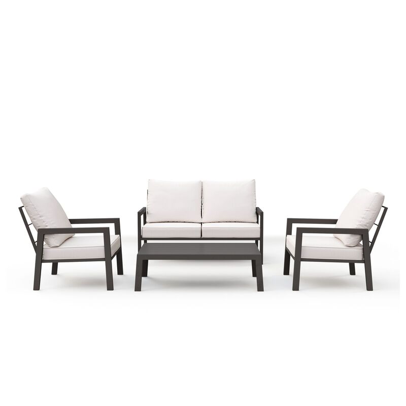 Diese Gartenlounge setzt moderne Akzente auf deiner Terrasse und bietet dir eine Insel der Ruhe in deinem Garten. Die dicken Polsterkissen laden zum Hinsetzen und Entspannen ein. Auf den Sesseln und dem 2-Sitzer-Sofa kannst du den Feierabend gemeinsam mit deinen Liebsten ausklingen lassen. Dank dem Couchtisch hast du Snacks und Schmöcker immer in Griffweite. Der Stahlrahmen sorgt für Eleganz und Stabilität. Worauf wartest du noch? Mache Urlaub auf dieser Lounge SANSIBAR in Beige!
