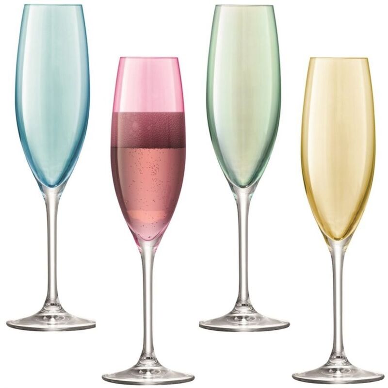 4er Set Polka Sektkelch 225ml – pastell sortiert – Sektglas-Set Polka – Glas – B 7 T 7 H 24 cm