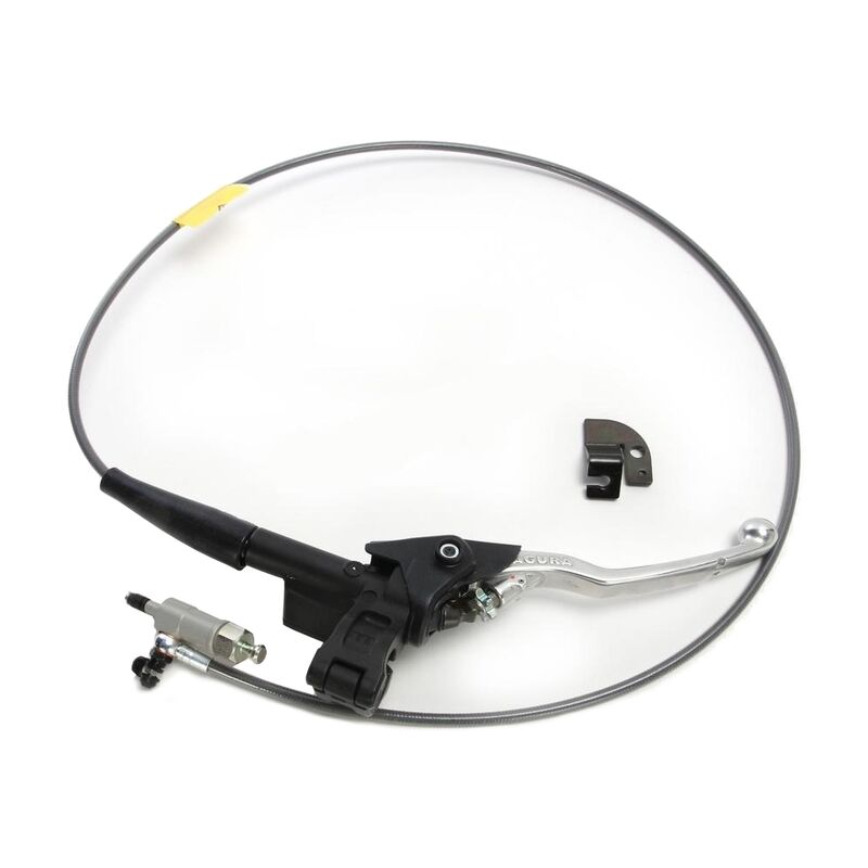 Die Hymec Kupplung überzeugt durch ein feines Ansprechverhalten, einen stabilen Druckpunkt sowie hervorragende Dosierbarkeit. Mit der qualitativ hochwertigen Verarbeitungsqualität untermauert Magura seinen Anspruch auf Pole-Position. Das neu entwickelte ergonomische Design schafft ein erstklassiges Greifgefühl. Es gibt keine störenden Konturen. Die Griffweite ist einstellbar. Das Kupplungssystem dient zur hydraulischen Betätigung einer mechanichen Kupplung. Der Zylinder besteht aus Aluminium mit angegossenem Behälter .Der Hebel ist aus bruchsicheren und geschmiedetem Aluminium. Der Druckpunkt ist über eine Rändelschraube individuell anpassbar. Die Montage der Armatur ist sehr einfach mit Hilfe einer Klappschelle realisierbar, der modellspezifische Nehmerzylinderhalter ist im Lieferumfang enthalten. Das Hebelgelenk wird durch eine Kappe gegen Verschmutzung geschützt. Die Hydraulik ist bereits befüllt mit MAGURA-BLOOD (Mineralöl). Technische Daten: * Geberzylinder – 167 schwarz * Geberkolben Durchmesser: 9,5mm * Leitungslänge: 1045mm * Einbaumass: 52 Kupplungsarmatur,hydraulisch,hydraulikkupplung,hymec,flexhebel,klapphebel,klappgriff,hartekupplung,kupplungsgriff Passend auf: HONDA CRF450R CRF450RX