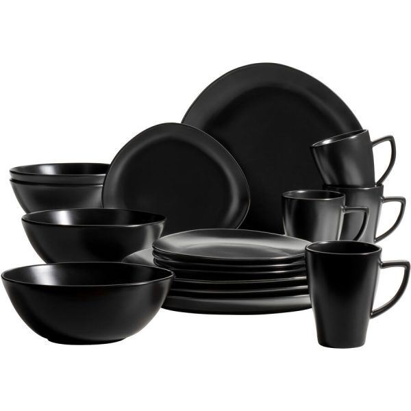 Glendale Geschirr-Set schwarz 16tlg. – Geschirr-Set Glendale – Steinzeug – – Paketmasse: B 34 x L 44 x H 34 – 4x Kaffeebecher 325 ml, 4x Dessertteller 21 cm, 4x Schüssel 20 cm, 4x Teller flach 29,5 cm