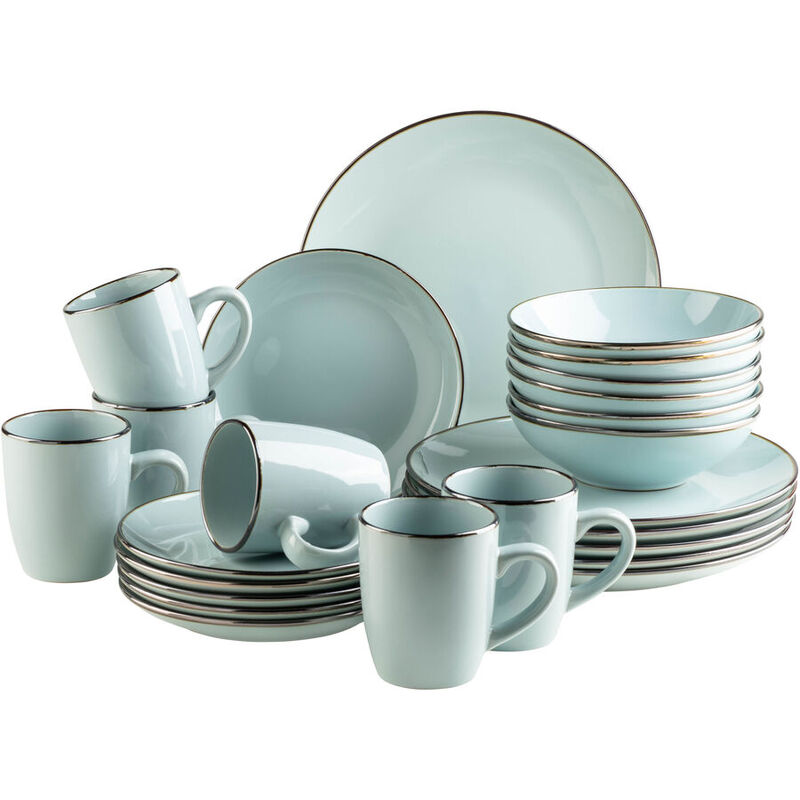 Kombiservice Metallic Rim 24tlg. Mint – Geschirrset Metallic Rim – Steinzeug –