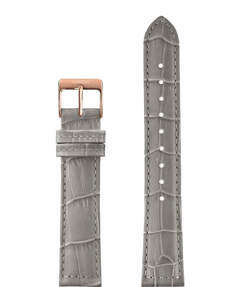 BandmaterialEchtes Leder-Uhrband mit semi-matter Alligatorprägung Bandanstossbreite18 mm SchliesseAus Edelstahl mit lasergraviertem Logo SchliessenfarbeGold Auswechselbares BandJa, mit quick release ColorGrau / Rosa ReferenceE3.1191
