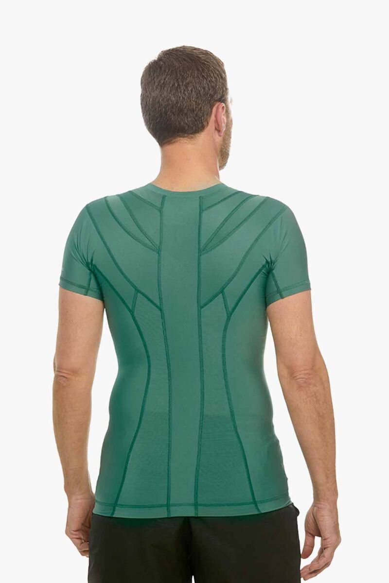 Das Posture Shirt™ für Männer ist aus widerstandsfähigen und atmungsaktiven Materialien hergestellt, sitzt eng am Körper ohne die Beweglichkeit einzuschränken. Die einzigartige
