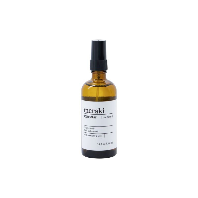 Schaffe mit diesem Raumspray von Meraki eine ganz besonders angenehme Stimmung in deinem Zuhause. Der Rain Forest-Duft erfüllt mit nur ein paar Sprühern jeden Raum mit einer dezenten Note von aquatischen Blumen Moos und Patchouli. Du kannst es in jedem Raum verwenden in dem du eine entspannte Wohlfühlstimmung schaffen möchtest. Das Spray wird in einer Glasflasche geliefert die du wunderbar zusammen mit anderen Deko-Elementen auf einem Tablett präsentieren kannst – im Bad zum Beispiel mit Seifen und Lotionen.