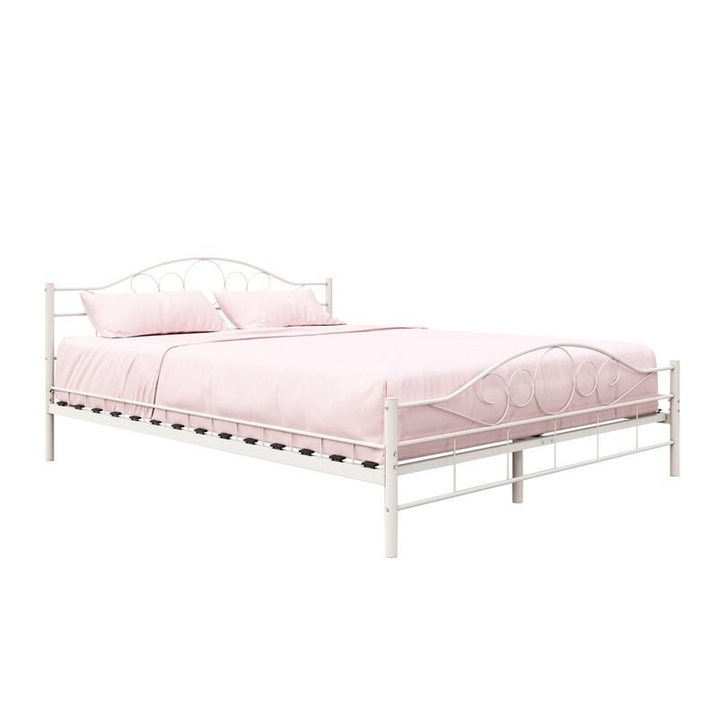 Dieses moderne Leichtmetall-Bett beeindruckt mit seinem verspielten Charme und den geschwungenen Formen. Das Bett lässt sich vielseitig kombinieren und passt auch zu einem klassischen Einrichtungsstil. Der inkludierte Lattenrost aus federndem Holz bietet einen besonders erholsamen Schlaf: So startest du ausgeschlafen und voller Energie in den Tag. Hol dir mit diesem weissen Metallbett einen traumhaften Eyecatcher in dein Schlafzimmer!