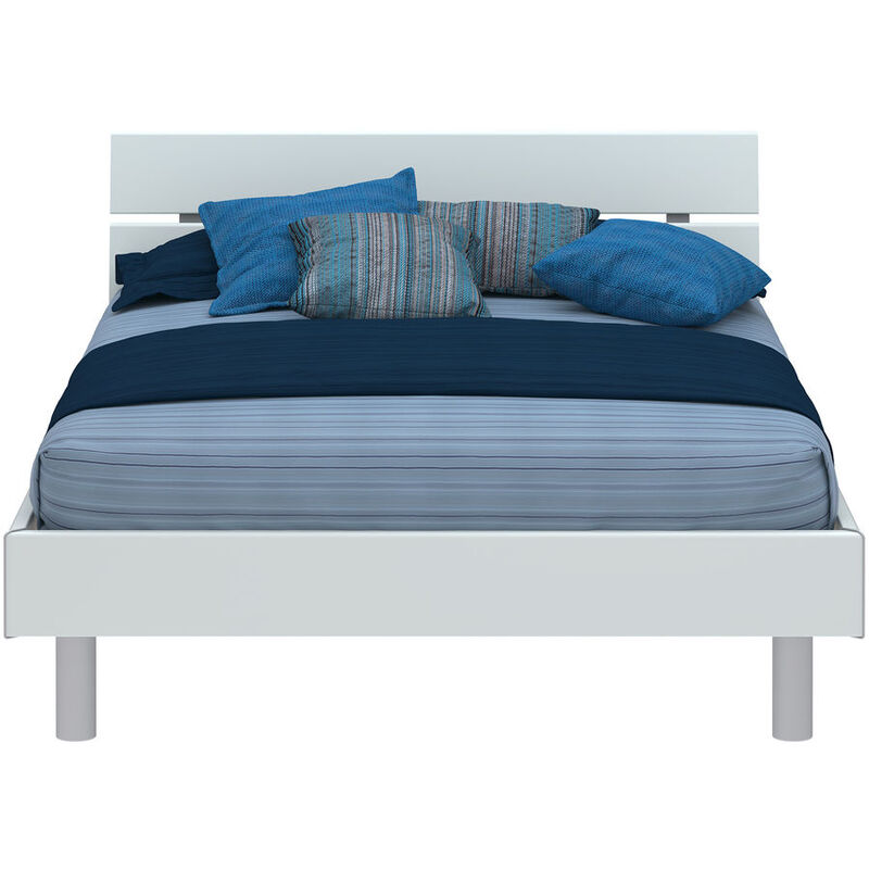 Bett – Bett Livorno – Holz – B 120 T 200 H 85 cm – Stellmasse: B 127 L 211 H 85, Höhe Oberkante Bettrahmen 38cm, Fusshöhe 20cm – Bettrahmen und Kopfteil in MDF weiss dekor, Füsse aus Kunststoff alufarbig, ohne Bettinhalt