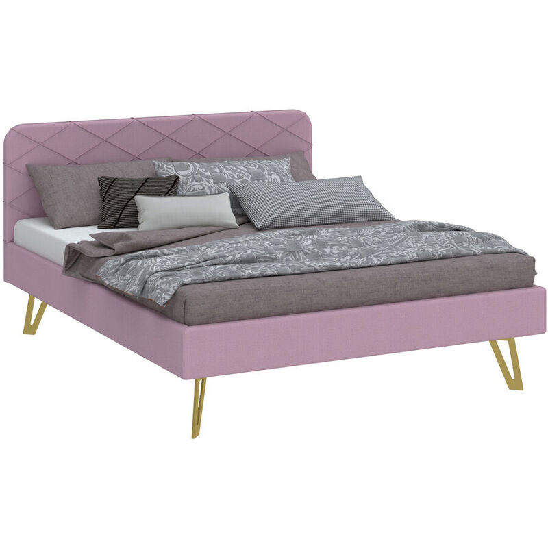 Sager Bett altrosa 160×200 cm – Bett Sager – Stahl/Stoff – B 160 T 200 H 102 cm – Stellmass: 169x210cm – inkl. Polsterkopfteil, ohne Bettinhalt (Matratze, Lattenrost)