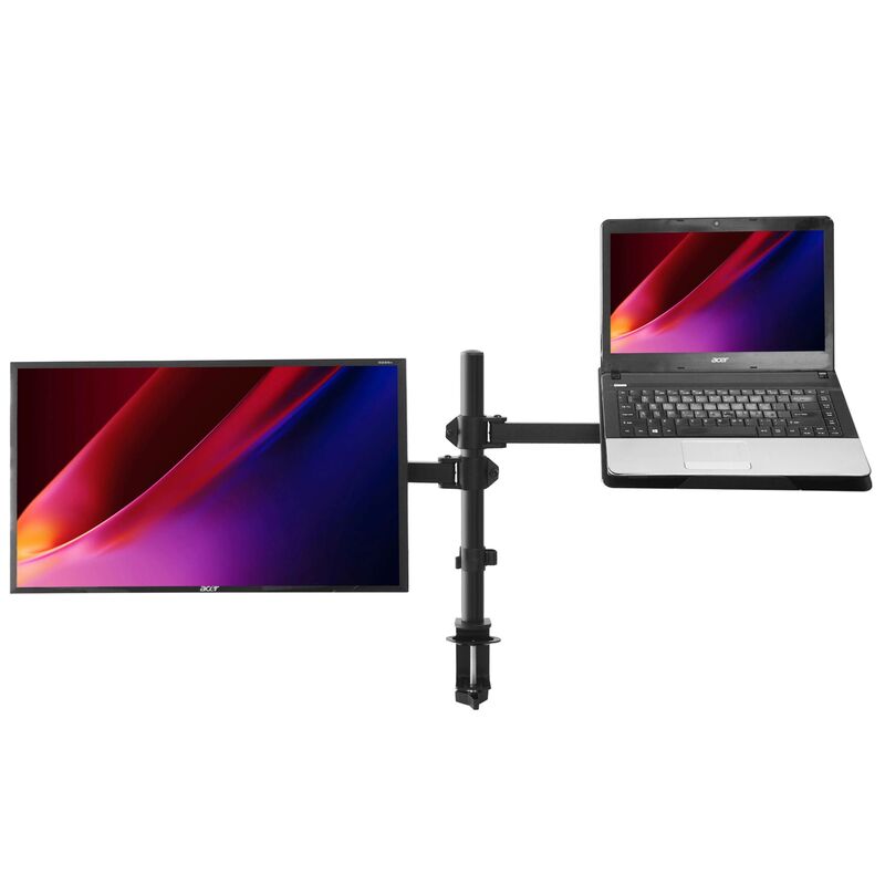 Diese clevere Tischhalterung ist ein Muss für jeden, der es praktisch mag! Die zwei Halterungen ermöglichen dir ein flexibles und effizienteres Arbeiten mit Monitor und Laptop. Der Schwenkarm der Monitorhalterung lässt sich ganz nach deinen Bedürfnissen einrichten und kann unabhängig von der Laptopablage in der Höhe verstellt werden. Die Ablage für Laptop oder Tablet ist mit einer Anti-Rutsch-Vorrichtung ausgestattet. Das Lochmuster vermeidet dabei die Überhitzung deiner Geräte. Intensiv arbeiten und dennoch höchsten Komfort geniessen: Diese Monitorhalterung für einen Monitor 13 – 32'' und einen Laptop 13 – 17'' macht’s möglich!