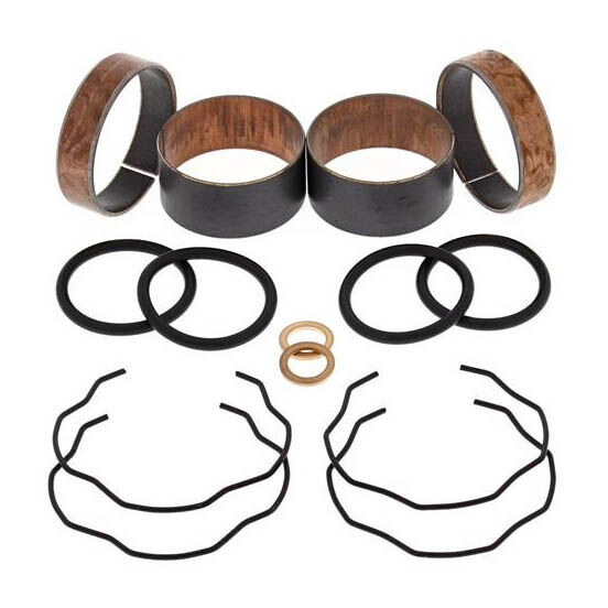 Komplettes Kit zur Überholung der Gabel mit vier Teflonhülsen und allem notwendigen Zubehör: Kupferringe, O-Ringe und Gabelsicherungsringe NEUE SIMMERRINGE SOLLTEN UNBEDINGT DAZUGEKAUFT WERDEN. Günstiger und besser als OEM Qualität. Die Führungsbuchsen wurden Dyno-getestet und zeigten nach 500000 Dämpfbewegungen deutlich weniger Abnützung gegenüber Werks-Buchsen. Dies haltet das Gabeloel sauber und die Lauf- und Dämpfungseigenschaften konstant! ACHTUNG:Der Tatsächliche Packungsinhalt kann vom Bild abweichen. Es wird immer ein Set mit allen benötigten Teilen für die Fahrzeuge unter _Passend auf_ geliefert.