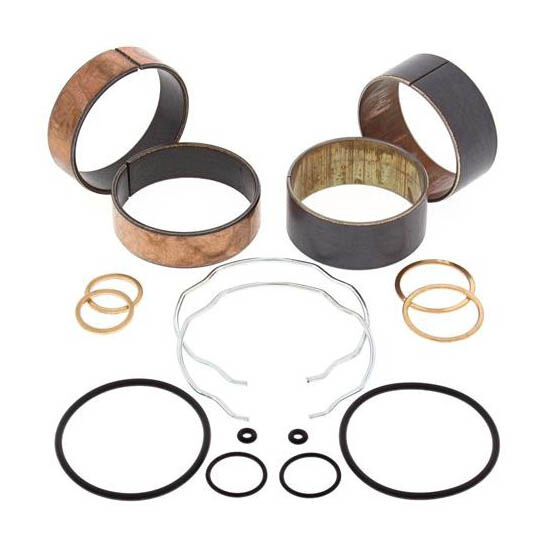 Komplettes Kit zur Überholung der Gabel mit vier Teflonhülsen und allem notwendigen Zubehör: Kupferringe, O-Ringe und Gabelsicherungsringe NEUE SIMMERRINGE SOLLTEN UNBEDINGT DAZUGEKAUFT WERDEN. Günstiger und besser als OEM Qualität. Die Führungsbuchsen wurden Dyno-getestet und zeigten nach 500000 Dämpfbewegungen deutlich weniger Abnützung gegenüber Werks-Buchsen. Dies haltet das Gabeloel sauber und die Lauf- und Dämpfungseigenschaften konstant! ACHTUNG:Der Tatsächliche Packungsinhalt kann vom Bild abweichen. Es wird immer ein Set mit allen benötigten Teilen für die Fahrzeuge unter _Passend auf_ geliefert.