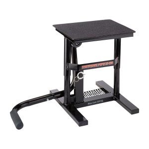 Hubständer * Grosse Auflagefläche hebt die meisten Modelle vollständig an * Einfaches Ständerdesign, das verhindert, dass beim Tragen die Finger eingeklemmt werden * Mit robustem, rutschfestem Material dick beschichtet * Zum einfachen Aufbocken von Dirt Bikes mit 50ccm-650ccm * Maximale Höhe 34.5cm * Bestens geeignet für Supermoto und tiefe Enduro Bikes * Mit integriertem Werkzeugfach am Untergestell bikestand,ständer,bock,ständerbock,motorradständer,porte moto,leve moto,töff aufbocken,motorrad aufbocken,crossständer,scherenständer,scherenlift,scherenheber,töfflift,motocross hubständer,Leve moto,Scissor lift,Ascensore per ,BY_RHDHGR