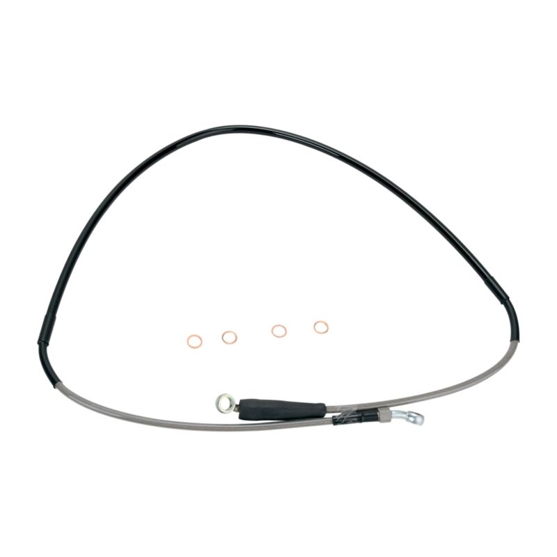 STAHLFLEXBREMSLEITUNG VON MOOSE RACING Optimiere dein Bremssystem mit einer Stahlflex-Bremsleitung von Moose Racing – hergestellt von dem englischen Spezialist Venhill. Jede Bremsleitung ist mit Top Qualitäts Dupont-Teflon beschichtet und ummantelt mit Edelstahl, zusätzlich ist die Oberfläche PVC beschichtet für einen noch besseren Schutz. * Besserer Druckpunkt * Maschinell verpresste Alu-Anschlüsse * Absorbiert im Gegensatz zu Kunststoffleitungen Wasser Durite de frein,Stahlflexleitung,Edelstahlbremsleitung,Brakeline,bremsschlauch Passend auf: SUZUKI DR-Z400S