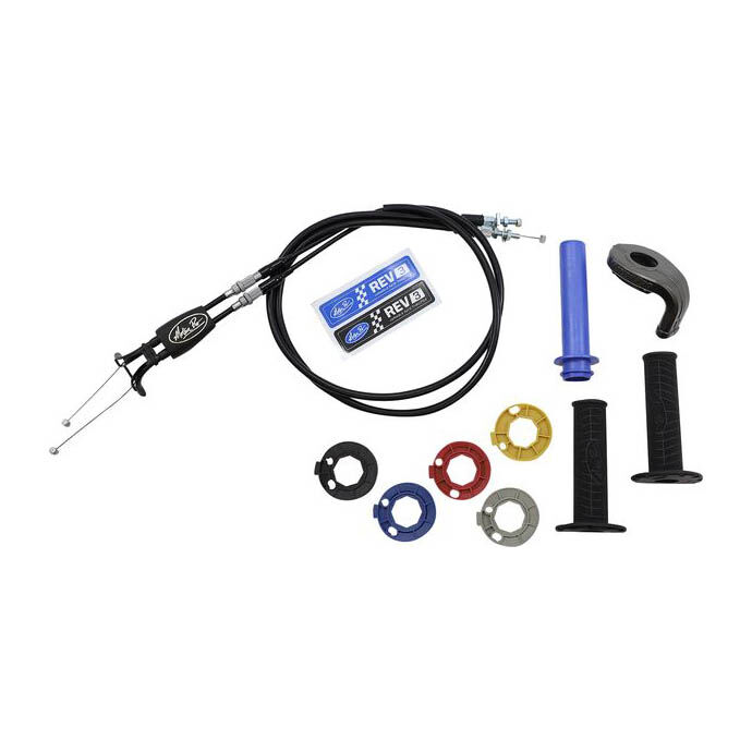 MOTION PRO GASGRIFF SET REV3? Die neueste Generation des innovativsten Gasgriffs der Welt!Die REV3(tm) Gasgriff Sets bieten Dir die Möglichkeit, durch unterschiedliche Gasgriffnocken das Ansprechverhalten deines Motorrades individuell anzupassen. Du hast die Wahl aus vier linearen Nocken und einer progressiven. Das robuste Gehäuse aus Aluminiumguss ist noch kompakter geworden und bietet Dir so mehr Platz für den Anbau. * Mit der Möglichkeit die Gasgriffnocken auszutauschen, lässt sich die Gaszugrate flexibel an deine Vorlieben und Fahrbedingungen anpassen. * Der verbesserte Gasgriffanschlag sorgt für mehr Festigkeit und Haltbarkeit. * Zusammensteckbare Gaszüge machen die Installation und den Rollenwechsel noch einfacher. * REV3(tm) Off-Road Kits sind kompatibel mit Motion Pro DirtControl(tm) V2 Lock-On Griffen und ODI Lock-On Griffen. * Inline-Zugversteller aus Billet-Aluminium erleichtern die Installation und Einstellung * Unterer Teil der Züge verwendet 5mm Gehäuse mit PTFE-Liner für reduzierte Reibung, erhöhte Flexibilität bei der Verlegung und geringeres Gewicht. * Patentiert Das Set enthält: * REV3(tm) Gasgriff mit entsprechender Gasgriffhülse (REV3(tm) Off-Road-Kits enthalten den unzerbrechlichen Titan Throttle Tube(tm)). * Motion Pro REV3(tm) schwarze Vinylkabel, die speziell für dein Motorrad entwickelt wurden. * REV3(tm) Sportbike-Kits enthalten Motion Pro RoadControl(tm) Griffe (MP-0630-0608) und REV3(tm) Off-Road-Kits enthalten Motion Pro DirtControl(tm) II Griffe (MP-06302828) * Vier austauschbare Gasgriffnocken: 35mm, 40mm, 45mm und 50 mm * Eine progressive Gasgriffnocke. Sportbike-Kits enthalten die Gasgriffnocke mit Strassenprofil (orange) und Offroad-Kits enthalten die Gasgriffnocke mit Offroad-Profil (grau) REV3(tm) Kits haben Kabel, die speziell für bestimmte Modelle entwickelt wurden, aber der REV3(tm) Gasgriff selbst ist nicht modellspezifisch. Daher kann es vorkommen, dass das REV3(tm)-Kit aufgrund von Platzmangel am Serienlenker nicht direkt aufgeschraubt werden kann. Bei einigen Installationen kann es notwendig sein, andere Armaturen am Serienlenker zu verschieben, die REV3(tm)-Gasgriffhülse und den Griff zu kürzen, einen längeren Nachrüstlenker zu installieren oder möglicherweise alles zusammen. Es obliegt dem Endverbraucher, die beste Methode für die Montage an seinem Motorrad zu bestimmen und sicherzustellen, dass das REV3(tm)-Kit ordnungsgemäss und mit den richtigen Abständen für einen sicheren Betrieb installiert wird. Der Einbau sollte von einem qualifizierten Mechaniker vorgenommen und sorgfältig auf seine Funktionstüchtigkeit überprüft werden. WARNUNG: Unsachgemässer Einbau kann zu schweren Verletzungen oder zum Tod führen! Variable rate throttle,individueller gasgriff,kurzgas,progessiver gasgriff, Tube de gaz avec poignées, Tubo gas con maniglie, revolver throttle tube,throttle tube,gasgriff,gasgriffrohr,gasdrehgriff,gashahn,poignée de gaz,maniglia del gas,gasgriff mit gaskabel, gasgriff mit bowdenzug,throttle assembly,revolver throttle,revolver gasgriff Passend auf: HONDA CRF250R CRF250RX CRF450R CRF450RX