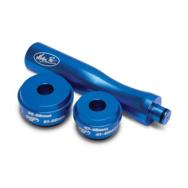 MOTION PRO LENKKOPFLAGERSCHALEN MONTAGEWERKZEUG * Passend für Kegelrollen-Lenkkopflager der Grössen: 41-42mm, 47-48mm, 51-52mm und 55-56mm * Die innovativen Aufsätze können von beiden Seiten verwendet werden * Sicherer Einbau des Kegellagerrings * Aus stabilem 6061 T-6 Aluminium gefertigt * Ergonomischer Griff * Mit Lasergravur für eine einfache Identifizierung Motion Pro Lenkkopflager Montagewerkzeug