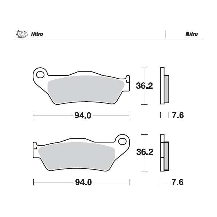 MOTO-MASTER® BREMSBELÄGE NITRO, 093021Moto-Master Sintermetall-Bremsbeläge werden entwickelt, um Dir die höchste Leistung und die längste Lebensdauer deiner Bremsanlage zu bieten. Sie sind erhältlich in 4 verschiedenen Belagmischungen: Nitro, Nitro Sport, Racing und Racing GP. Entwickelt für extreme Bedingungen wie Sand, Schlamm und Wasser. NITRO * Gesinterter MX / Enduro Bremsbelag für den allgemeinen Gebrauch. * Ein ausgezeichneter langlebiger Allwetter Bremsbelag. * Für Enduro sehr zu empfehlen. NITRO SPORT * Gesinterter MX / Enduro Bremsbelag für den allgemeinen Gebrauch. * Die etwas weichere Mischung sorgt für mehr Bremsenergie und gibt dem Fahrer eine bessere Rückmeldung. RACING * Gesinterter MX / Enduro-Bremsbelag für fortgeschrittenes Fahrverhalten. * Bietet bei allen Wetterbedingungen eine hervorragende Bremsleistung. RACING GP * High End MX Racing Pad für den professionellen Einsatz * Kombiniert eine spezielle Sintermischung für maximale Bremsleistung mit hoher Temperaturbeständigkeit, um mögliches Bremsfading zu vermeiden. * Bei diesen Belägen ist ein hoher Anfangsbiss und eine lineare Bremsleistung für aggressive und kontrollierte Verzögerung inklusive.
