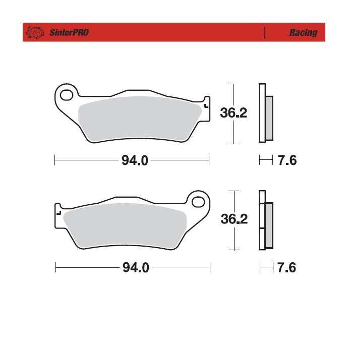 MOTO-MASTER® BREMSBELÄGE SINTERPRO RACING, 093011Moto-Master Sintermetall-Bremsbeläge werden entwickelt, um Dir die höchste Leistung und die längste Lebensdauer deiner Bremsanlage zu bieten. Sie sind erhältlich in 4 verschiedenen Belagmischungen: Nitro, Nitro Sport, Racing und Racing GP. Entwickelt für extreme Bedingungen wie Sand, Schlamm und Wasser. NITRO * Gesinterter MX / Enduro Bremsbelag für den allgemeinen Gebrauch. * Ein ausgezeichneter langlebiger Allwetter Bremsbelag. * Für Enduro sehr zu empfehlen. NITRO SPORT * Gesinterter MX / Enduro Bremsbelag für den allgemeinen Gebrauch. * Die etwas weichere Mischung sorgt für mehr Bremsenergie und gibt dem Fahrer eine bessere Rückmeldung. RACING * Gesinterter MX / Enduro-Bremsbelag für fortgeschrittenes Fahrverhalten. * Bietet bei allen Wetterbedingungen eine hervorragende Bremsleistung. RACING GP * High End MX Racing Pad für den professionellen Einsatz * Kombiniert eine spezielle Sintermischung für maximale Bremsleistung mit hoher Temperaturbeständigkeit, um mögliches Bremsfading zu vermeiden. * Bei diesen Belägen ist ein hoher Anfangsbiss und eine lineare Bremsleistung für aggressive und kontrollierte Verzögerung inklusive.