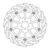 MOTO-MASTER® BREMSSCHEIBE FLAME FLOATING, 296MM, VORNE LINKSDie Bremsscheibe im Flame Design ist die perfekte Lösung für Fahrer, die nach mehr Bremskraft suchen. Schwimmend gelagert mit einem Aluminium-Innenträger und versehen mit dem innovativen Flame-Design bietet sie einen spürbaren Leistungszuwachs gegenüber der Original-Bremsscheibe. Das Flame-Design bietet eine optimale Kühlung und ein unübertroffen sanftes und besser berechenbares Bremsverhalten, das es dir ermöglicht, härter zu bremsen. MERKMALE: * Extrem leichtes Design * CNC-gefräster Innenring aus Flugzeugaluminium * Ultraleichte Edelstahl-Floater * Optimale Wärmeableitung und eine perfekte Reinigung der Bremsbelagoberfläche * Hervorragendes Feedback an den Fahrer * Gleichmässiger Bremsbelagkontakt während der gesamten Rotation der Scheibe sorgt für eine lineare Verzögerung * CNC-gefräst und beidseitig präzisionsgeschliffen für perfekte Passgenauigkeit und Ebenheit * Für beste Performance empfehlen wir die Verwendung von Moto-Master Bremsbelägen * Auch als Racing-Version für den professionellen Rennsport und den Einsatz auf der Rennstrecke erhältlich * Mit CH-ZULASSUNG erhältlich