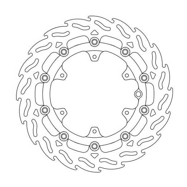 MOTO-MASTER® BREMSSCHEIBE FLAME FLOATING, 300MM, VORNE RECHTSDie Bremsscheibe im Flame Design ist die perfekte Lösung für Fahrer, die nach mehr Bremskraft suchen. Schwimmend gelagert mit einem Aluminium-Innenträger und versehen mit dem innovativen Flame-Design bietet sie einen spürbaren Leistungszuwachs gegenüber der Original-Bremsscheibe. Das Flame-Design bietet eine optimale Kühlung und ein unübertroffen sanftes und besser berechenbares Bremsverhalten, das es dir ermöglicht, härter zu bremsen. MERKMALE: * Extrem leichtes Design * CNC-gefräster Innenring aus Flugzeugaluminium * Ultraleichte Edelstahl-Floater * Optimale Wärmeableitung und eine perfekte Reinigung der Bremsbelagoberfläche * Hervorragendes Feedback an den Fahrer * Gleichmässiger Bremsbelagkontakt während der gesamten Rotation der Scheibe sorgt für eine lineare Verzögerung * CNC-gefräst und beidseitig präzisionsgeschliffen für perfekte Passgenauigkeit und Ebenheit * Für beste Performance empfehlen wir die Verwendung von Moto-Master Bremsbelägen * Auch als Racing-Version für den professionellen Rennsport und den Einsatz auf der Rennstrecke erhältlich * Mit CH-ZULASSUNG erhältlich