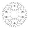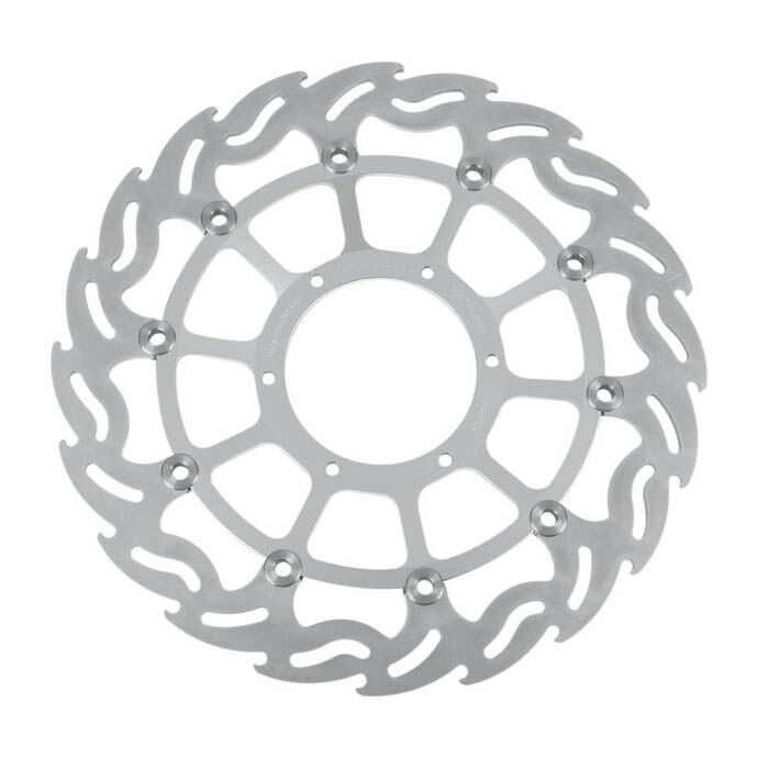 MOTO-MASTER® BREMSSCHEIBE FLAME FLOATING, 320MM, VORNE LINKSDie Bremsscheibe im Flame Design ist die perfekte Lösung für Fahrer, die nach mehr Bremskraft suchen. Schwimmend gelagert mit einem Aluminium-Innenträger und versehen mit dem innovativen Flame-Design bietet sie einen spürbaren Leistungszuwachs gegenüber der Original-Bremsscheibe. Das Flame-Design bietet eine optimale Kühlung und ein unübertroffen sanftes und besser berechenbares Bremsverhalten, das es dir ermöglicht, härter zu bremsen. MERKMALE: * Extrem leichtes Design * CNC-gefräster Innenring aus Flugzeugaluminium * Ultraleichte Edelstahl-Floater * Optimale Wärmeableitung und eine perfekte Reinigung der Bremsbelagoberfläche * Hervorragendes Feedback an den Fahrer * Gleichmässiger Bremsbelagkontakt während der gesamten Rotation der Scheibe sorgt für eine lineare Verzögerung * CNC-gefräst und beidseitig präzisionsgeschliffen für perfekte Passgenauigkeit und Ebenheit * Für beste Performance empfehlen wir die Verwendung von Moto-Master Bremsbelägen * Auch als Racing-Version für den professionellen Rennsport und den Einsatz auf der Rennstrecke erhältlich * Mit CH-ZULASSUNG erhältlich